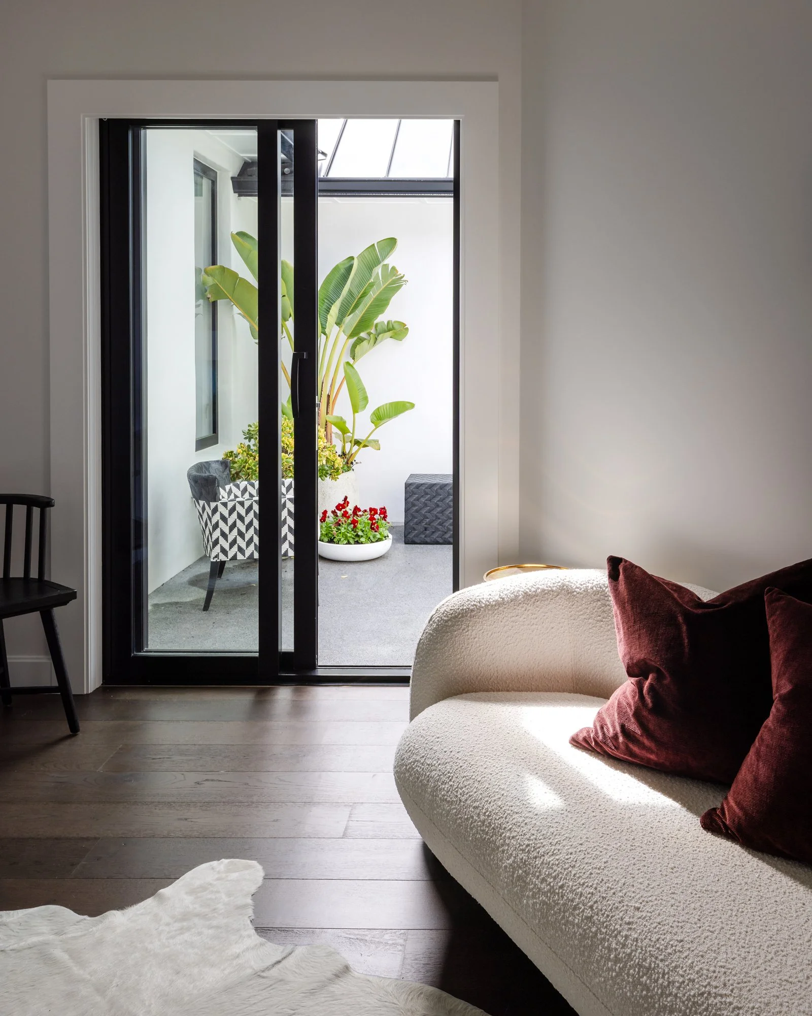 Passing through the privacy gates and into the foyer, the interplay of artfully curated feature lighting, a sophisticated colour palette and carefully selected fixtures and fittings establish the tone for the home’s considered design.