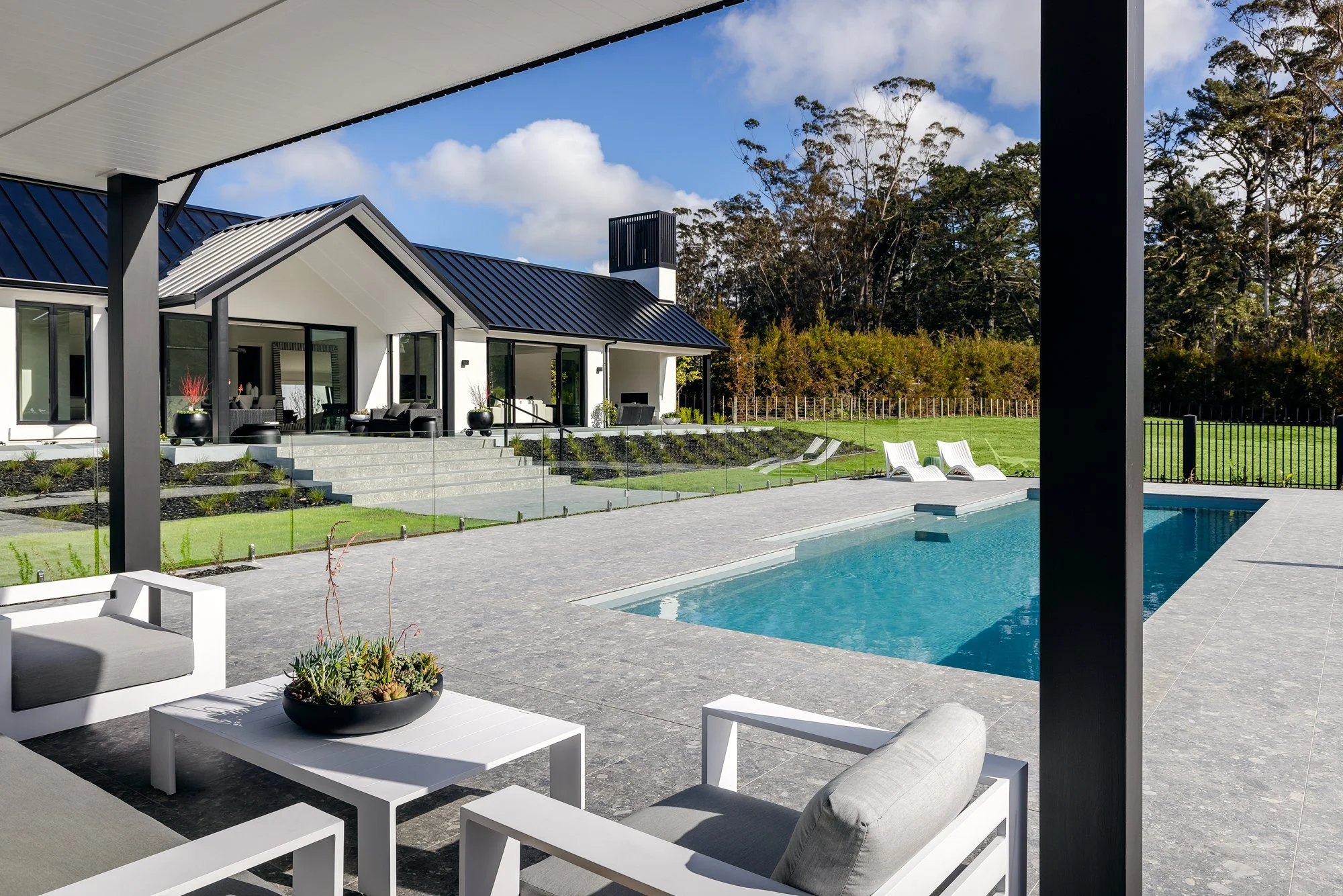 Outdoor living has been carefully integrated into the overall architectural plan, with dual seating areas, including a loggia with a fireplace and a 35m² Cabana overlooking a 12m pool, creating versatile, year-round spaces.